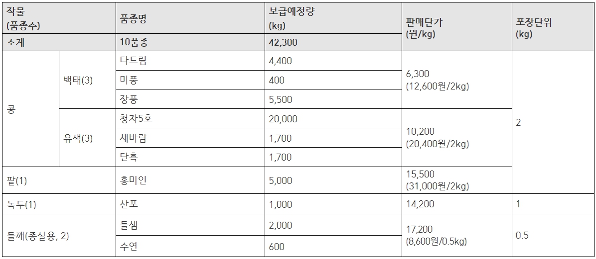 한국농업기술진흥원 밭작물(콩, 팥, 녹두, 들깨) 종자 2차 개별신청 안내