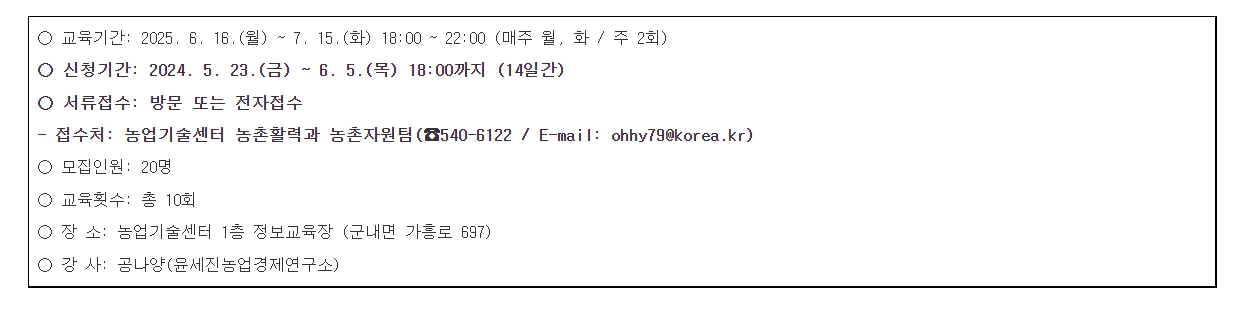 【2025 맘마이아 프로젝트「농특산물 활용 창업 · 경영교육」수강생 모집】