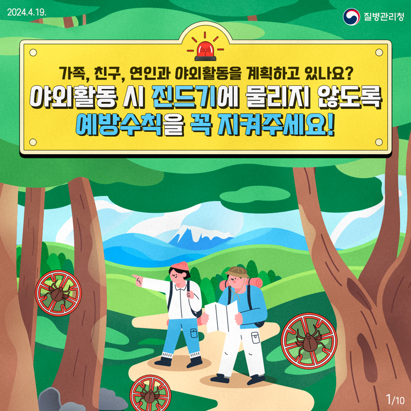 [카드뉴스] 야외활동 시 진드기에 물리지 않도록 예방수칙을 꼭 지켜주세요!