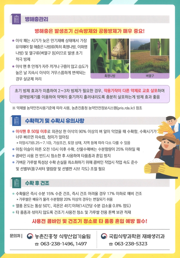 가루쌀(바로미2) 출수기 전후 및 수확후 관리기술