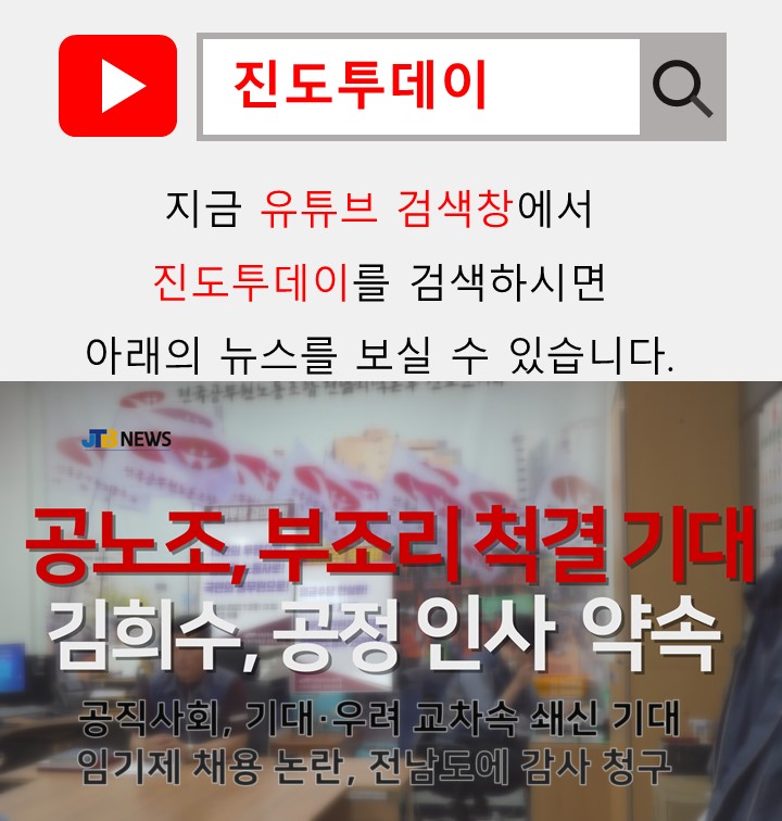 ☞뉴스 영상은 JTB NEWS 홈페이지(www.jindotoday.com) 유튜브를 통해서 확인가능합니다.