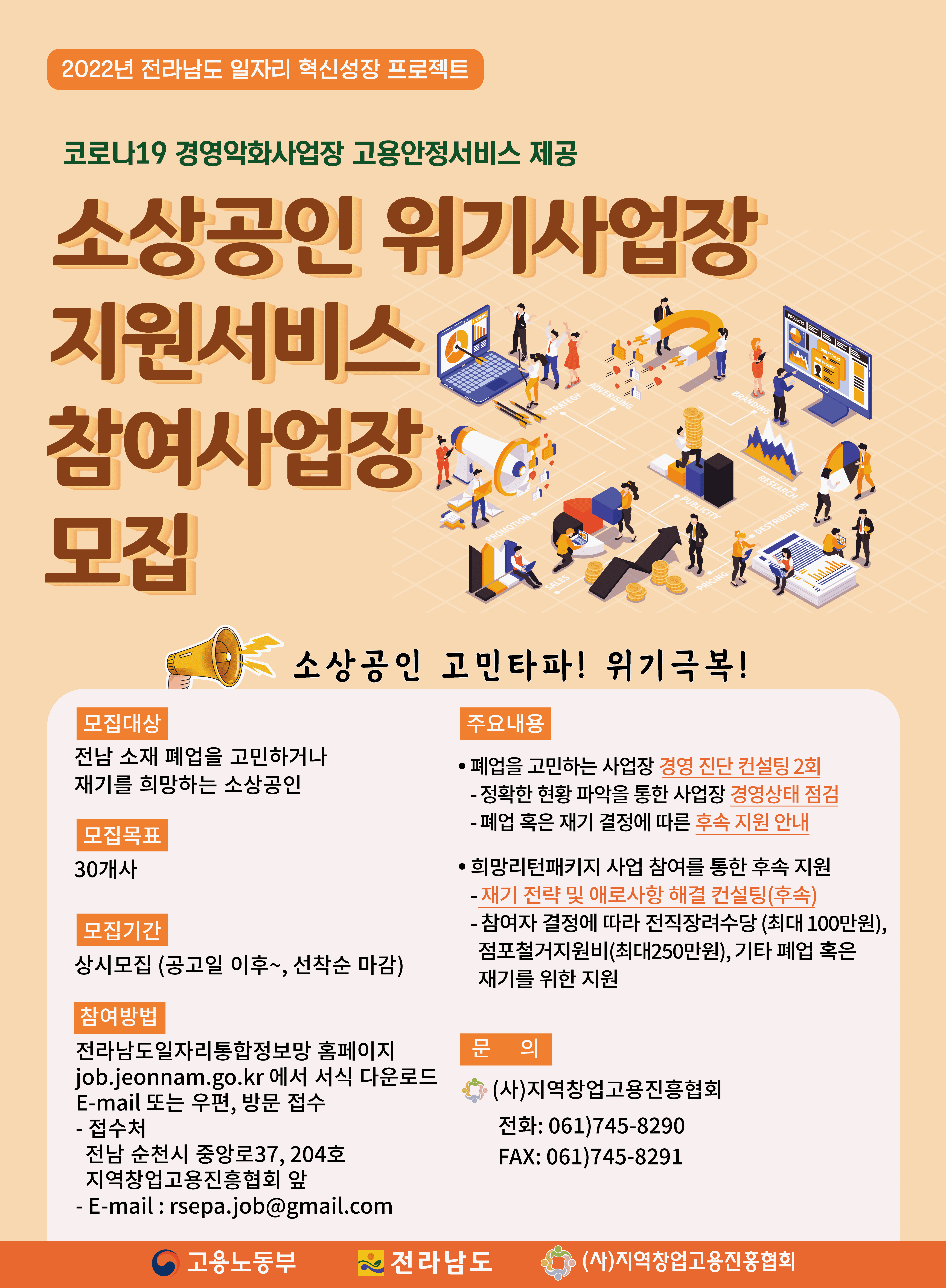 ❍ 모집규모: 전남 소재 폐업을 고민하거나 재기를 희망하는 소상공인 30개사