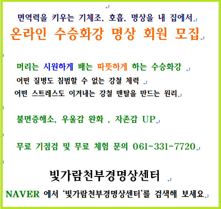 제목 기체조, 호흡, 명상을 내 집에서 온라인 수승화강 명상 회원 모집