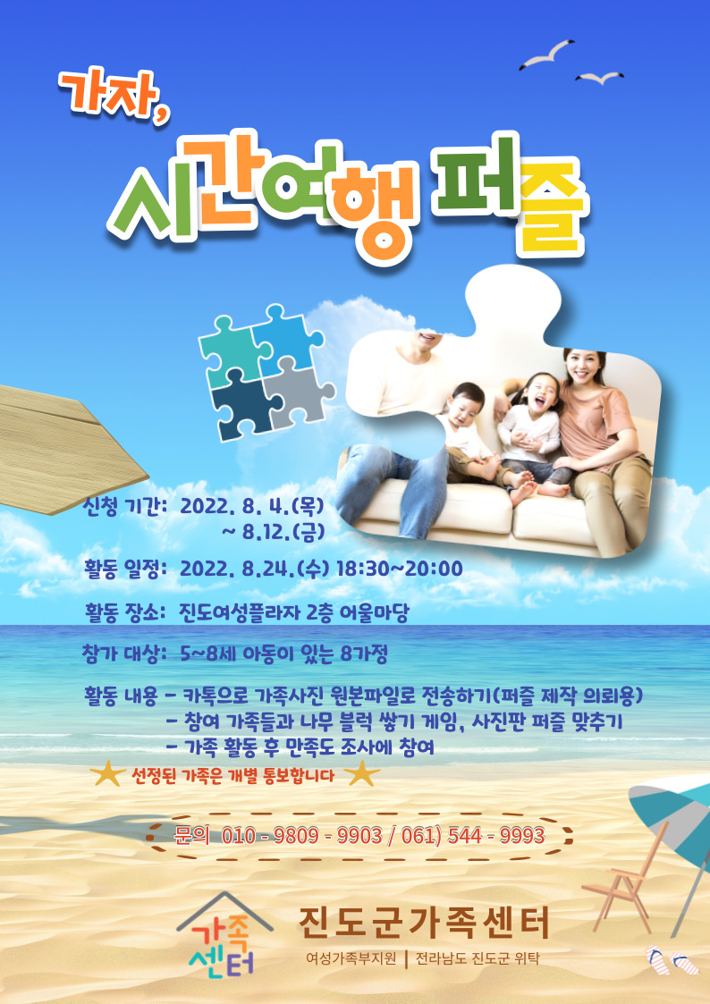 ♣가족센터♣ 8월 가족사랑의 날 프로그램 가자, 시간여행 퍼즐~!! 참여자 모집