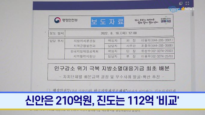 [JTB NEWS/진도투데이] 진도군, 지방소멸대응기금 지원 '최하위' 논란