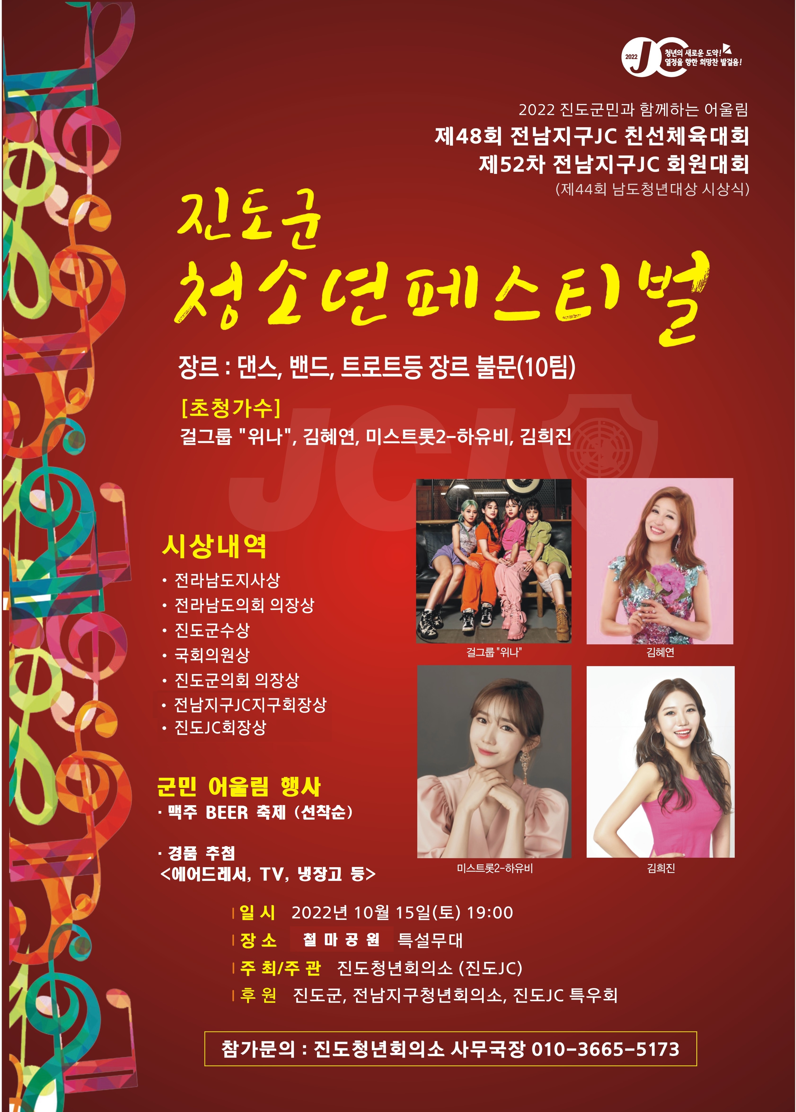 < 청소년 페스티발 , 초대가수 공연 후 경품추첨, 불꽃축제가 있습니다 >
