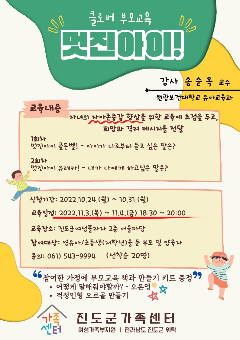♣가족센터♣ 부모역할지원 프로그램 '클로버 부모교육 -멋진아이'