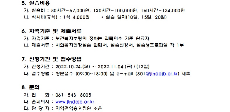 실습신청서,실습생 프로파일.hwp 은 진도군장애인종합복지관 홈페이지 공지사항에서 확인 부탁드립니다. 복지관 홈페이지 바로가기 http://www.jindojb.or.kr/sub/notice/notice.asp?mode=view&bid=1&idx=3708