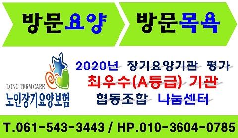 나눔센터 장기요양 대상자 어르신 모집(65세 이상) / 061-543-3443