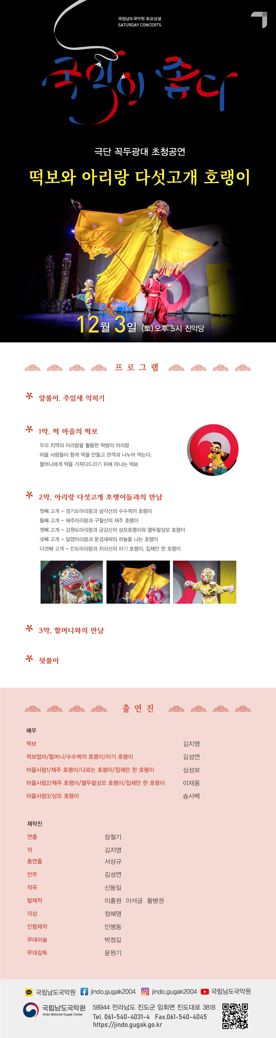 12월 첫 번째 토요상설 ‘국악이 좋다!’는 극단 꼭두광대 초청공연입니다.