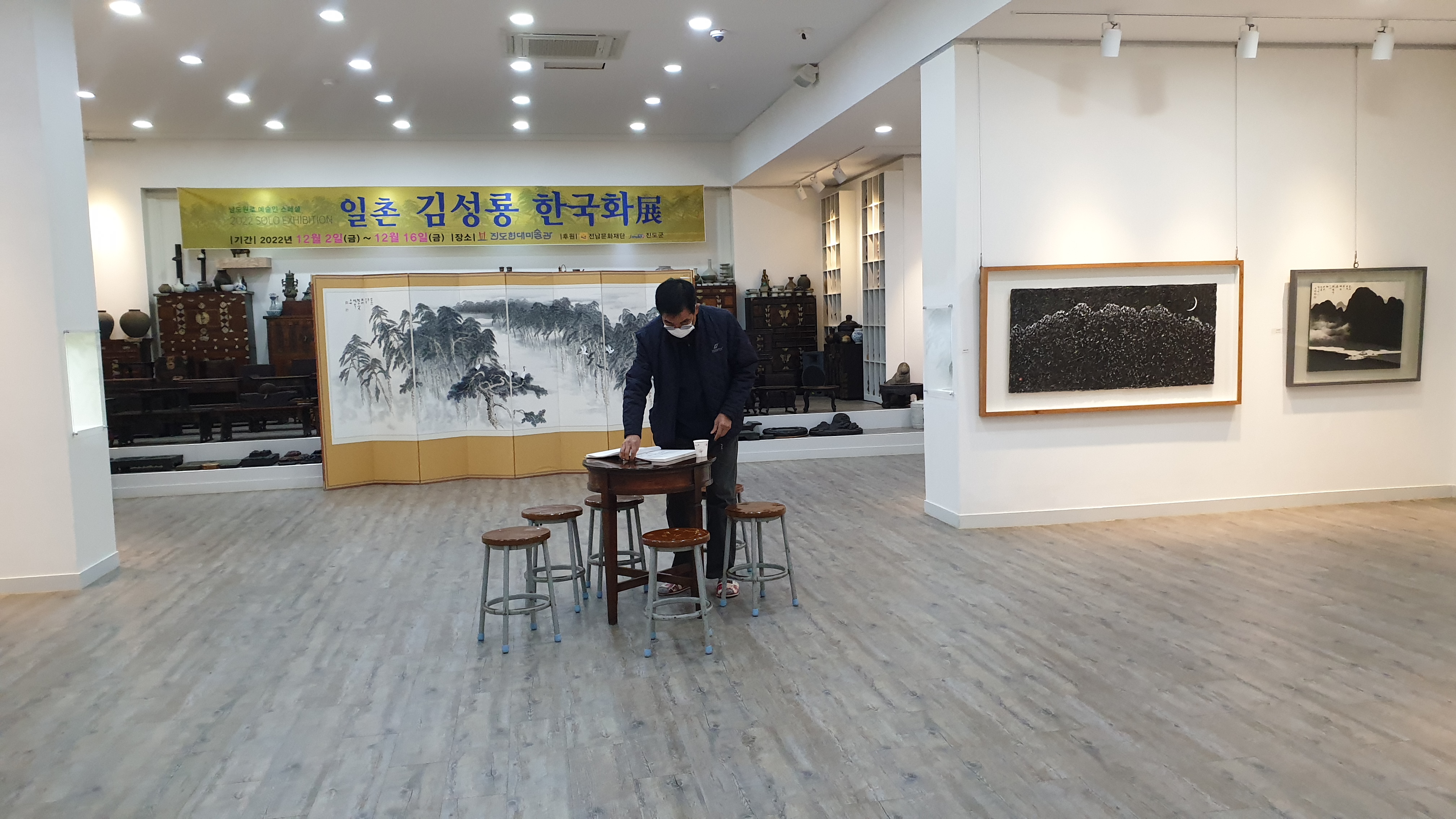 어제는 주말이라 차 한잔 마실겸 갔던이. 마침 일촌 김성룡씨 작품 전시회를 하고 있었습니다.
