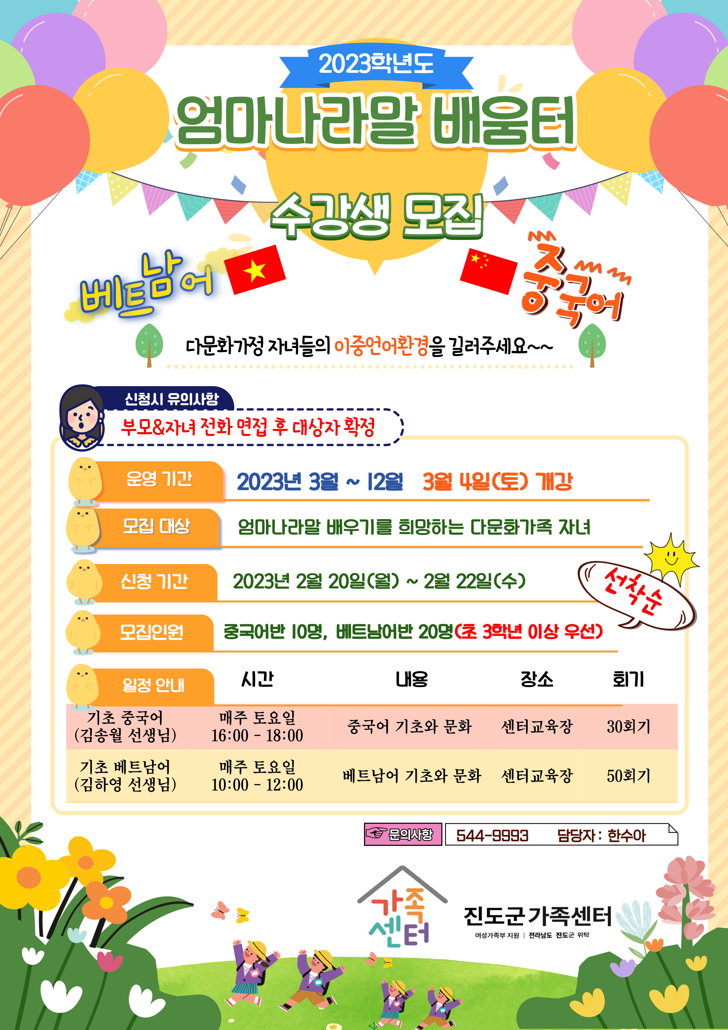 진도군가족센터 - 엄마나라말 배움터(중국어/베트남어)수강생 모집