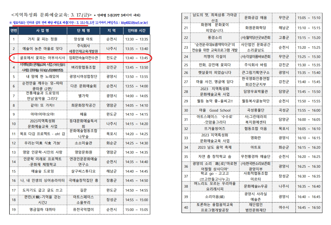 전남문화재단 지역 특성화 사업을 신청했다.
