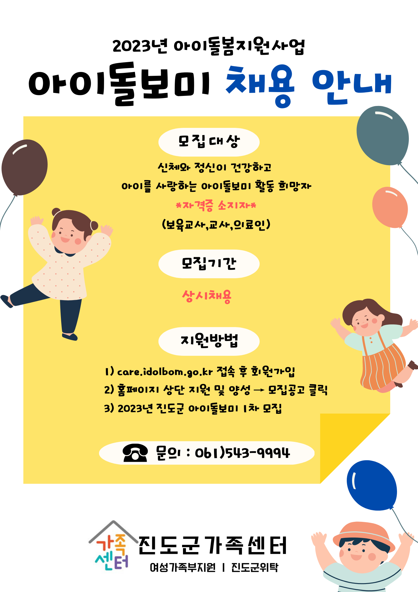 진도군가족센터 아이돌보미 상시채용(자격증 소지자)