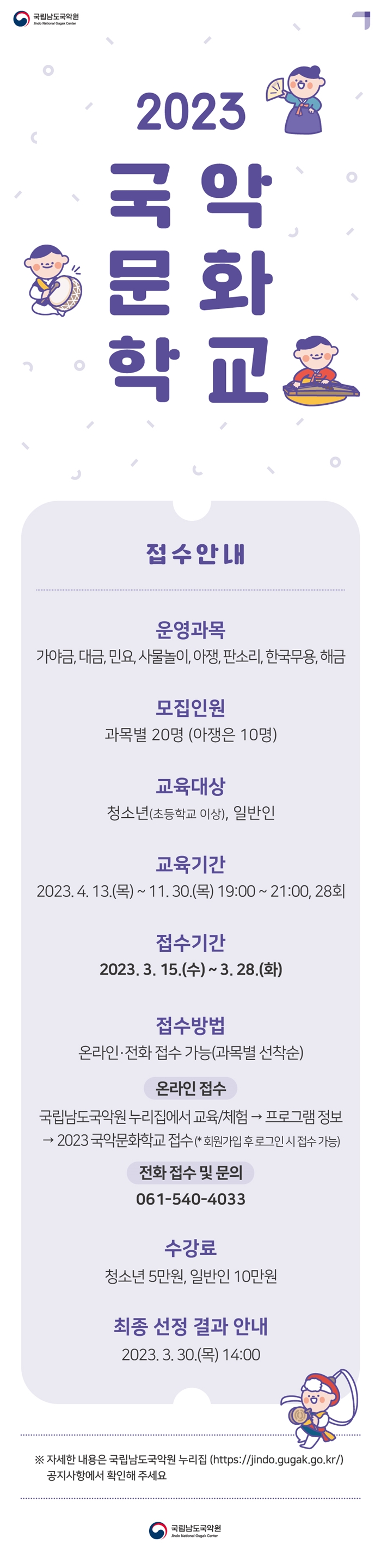 제목 [국립남도국악원] 2023 국악문화학교 접수 안내