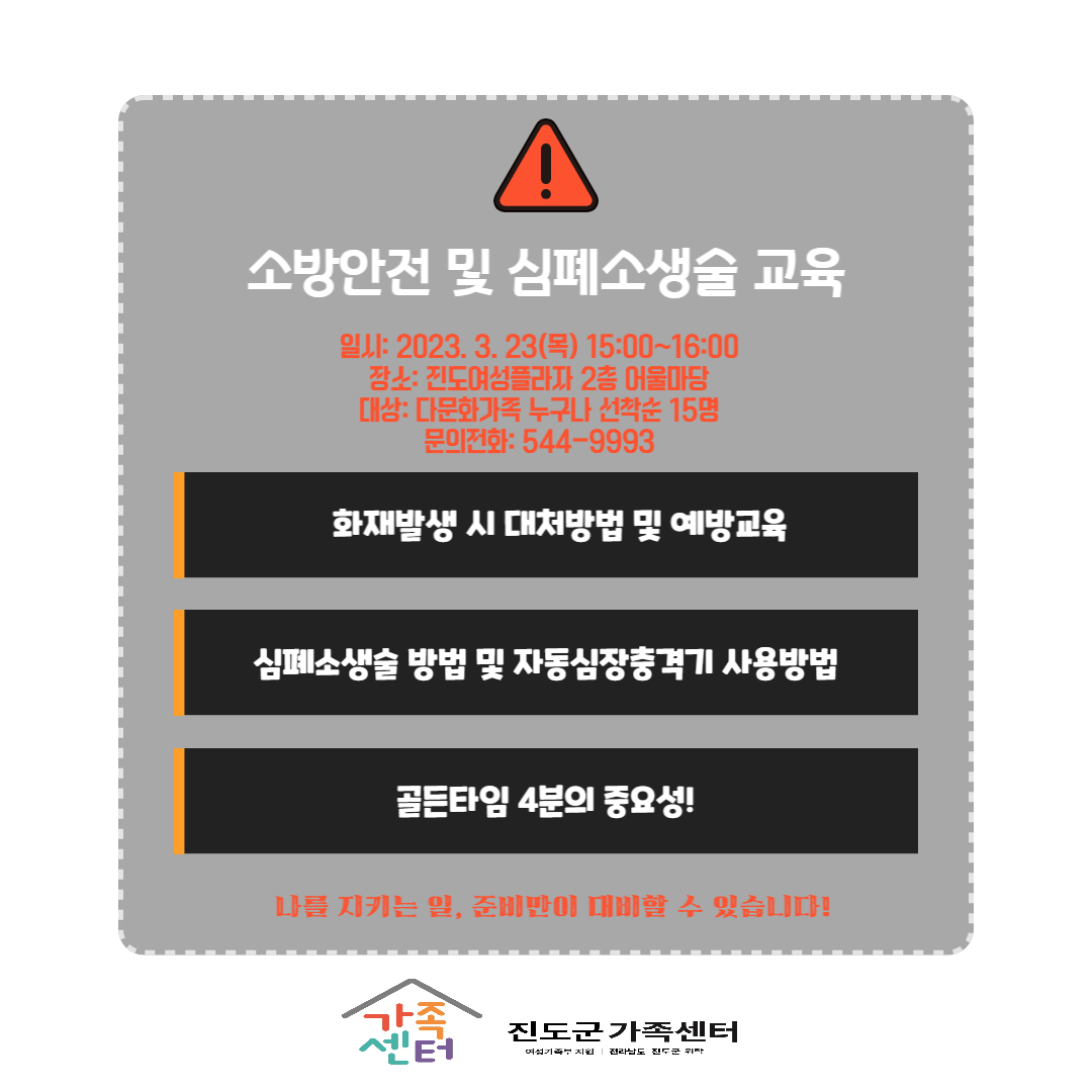 ♣가족센터♣ 2023년 다문화가족을 위한 소방안전 및 심폐소생술 교육 운영!! 나와 가족을 위한 준비입니다