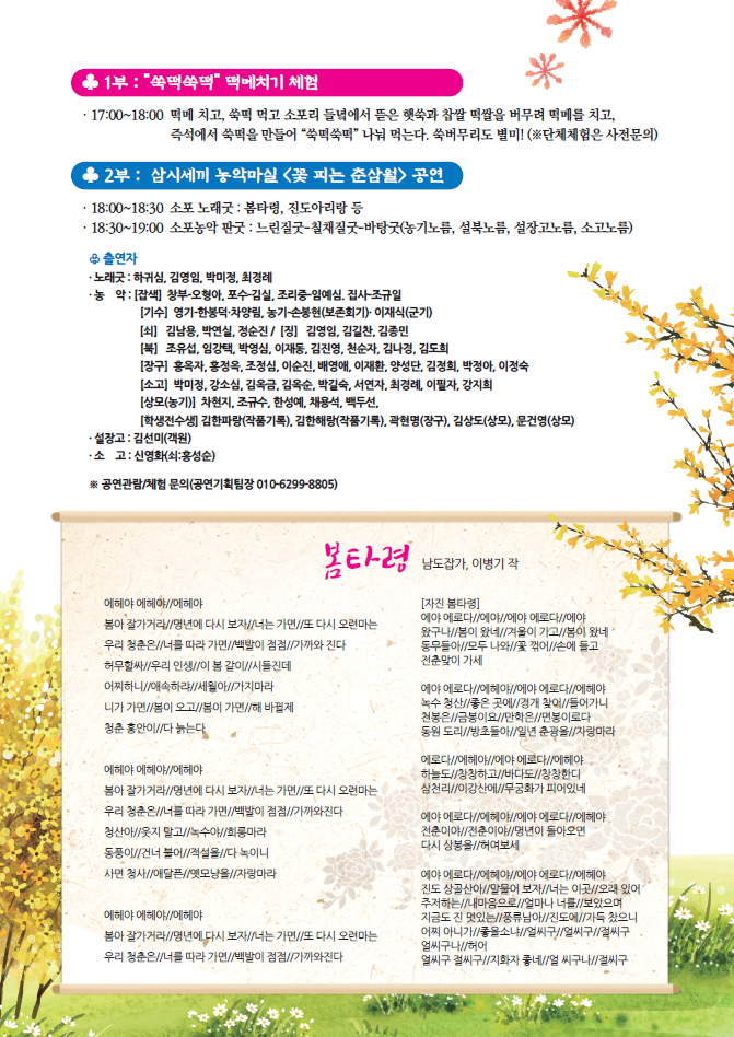 "쑥떡쑥떡" 떡메를 치며 흥겨운 봄날을 보내시고 싶은 분들은