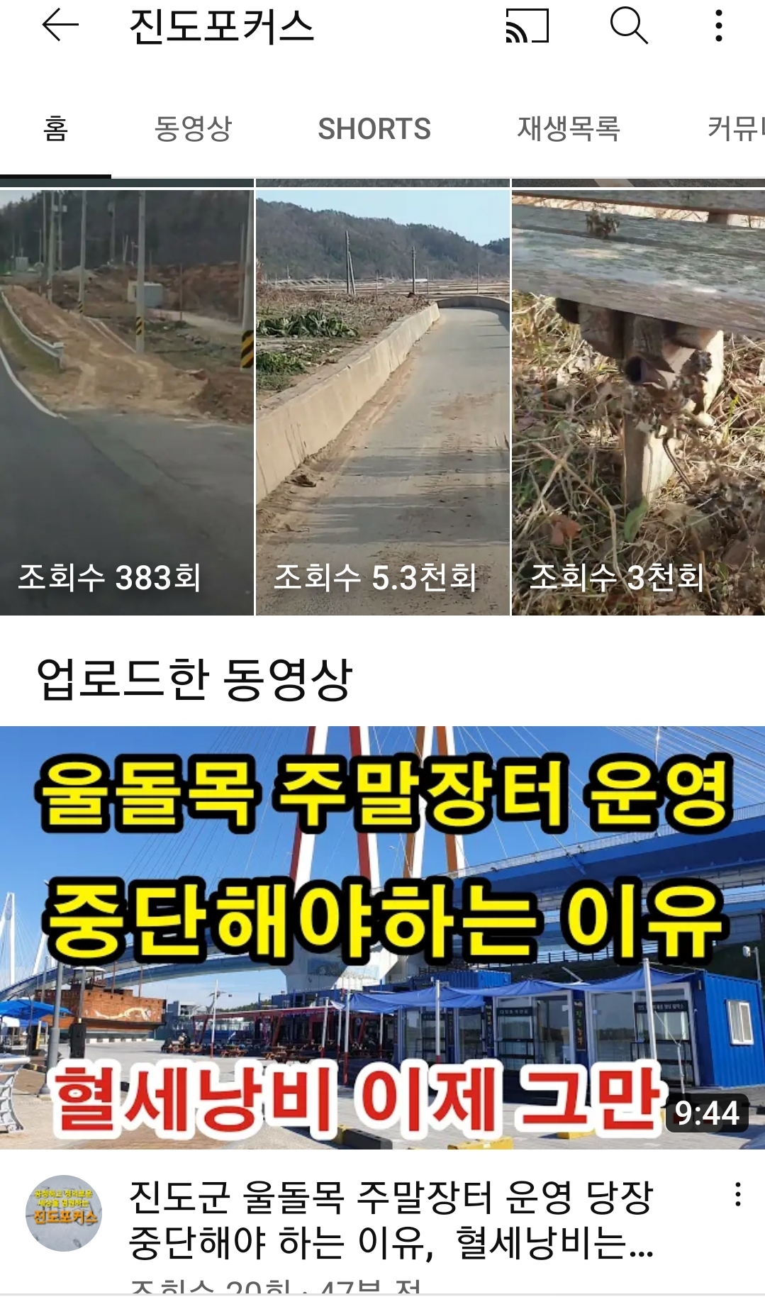 합목적성 상실한 혈세낭비 진도군 녹진 울돌목 주말 장터 운영 중단해야.. 운영 사업비 내역 공개