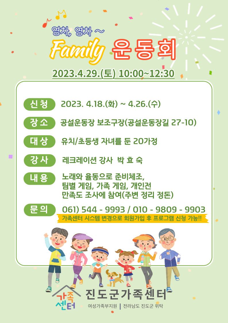 ♣가족센터♣ 영차, 영차~ family 운동회 프로그램 참여자 모집! 자녀들과 힐링의 시간을 만들어요~
