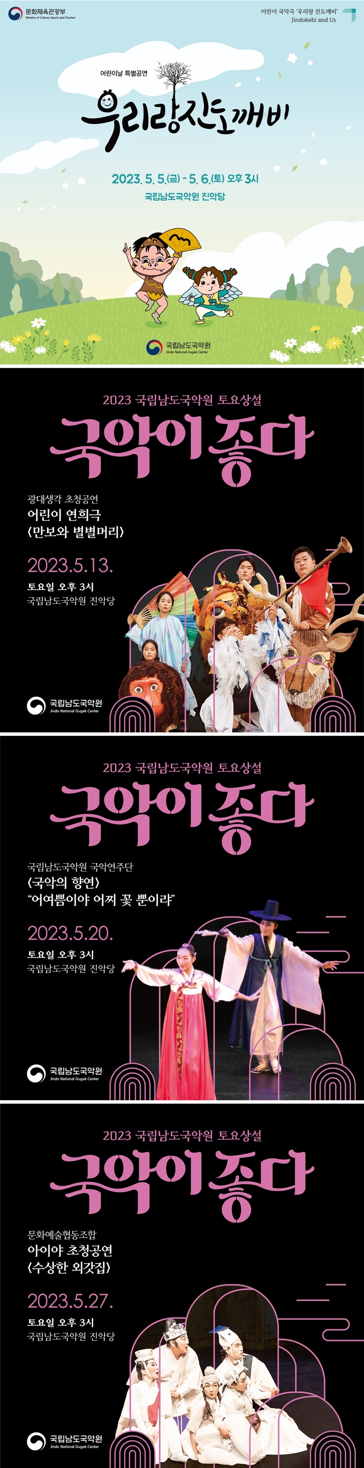 또한, 5월 5일과 6일은 국립남도국악원의 어린이 국악극 <우리랑 진도깨비>도 무대에 올립니다.