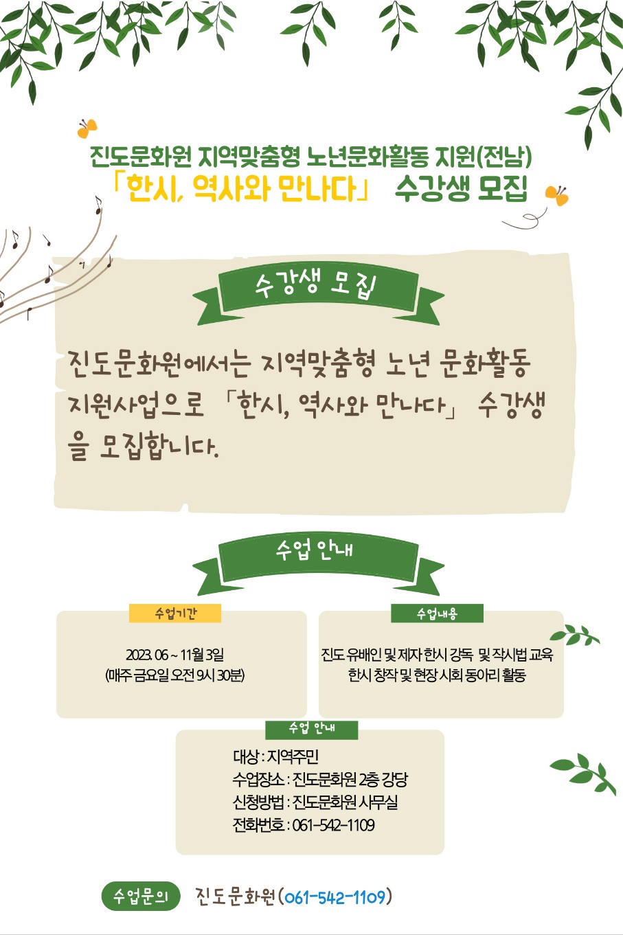 진도문화원 「한시, 역사를 만나다」수강생 모집