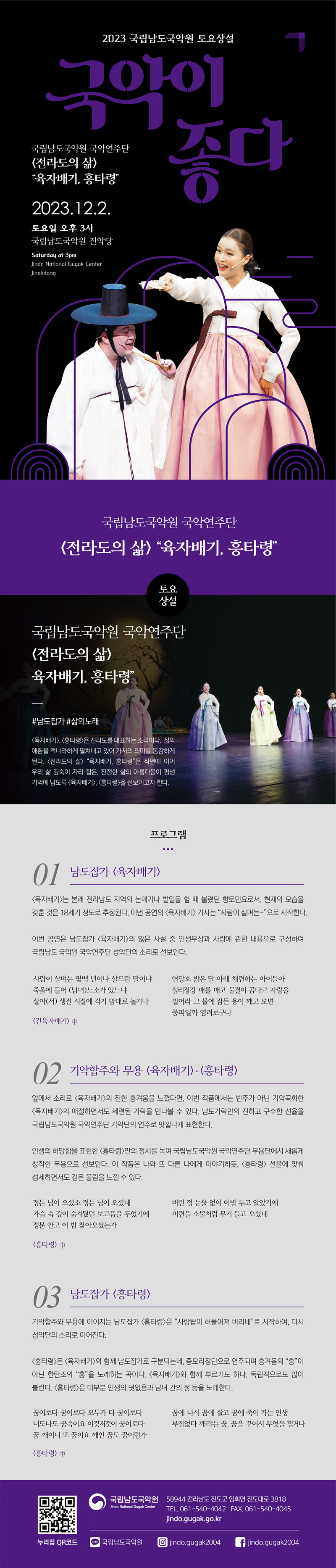 ▶ 국립남도국악원 누리집 바로가기 http://jindo.gugak.go.kr
