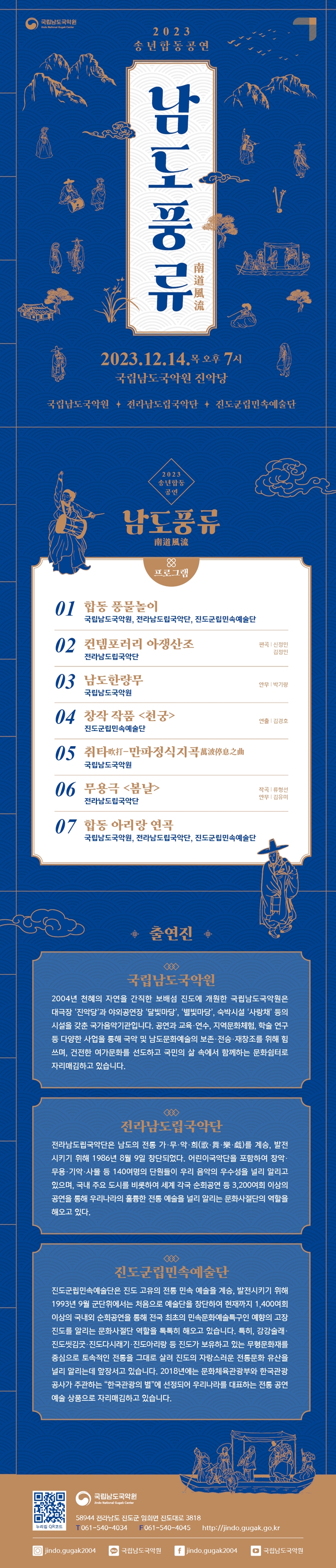 ▶ 국립남도국악원 누리집 바로가기 http://jindo.gugak.go.kr