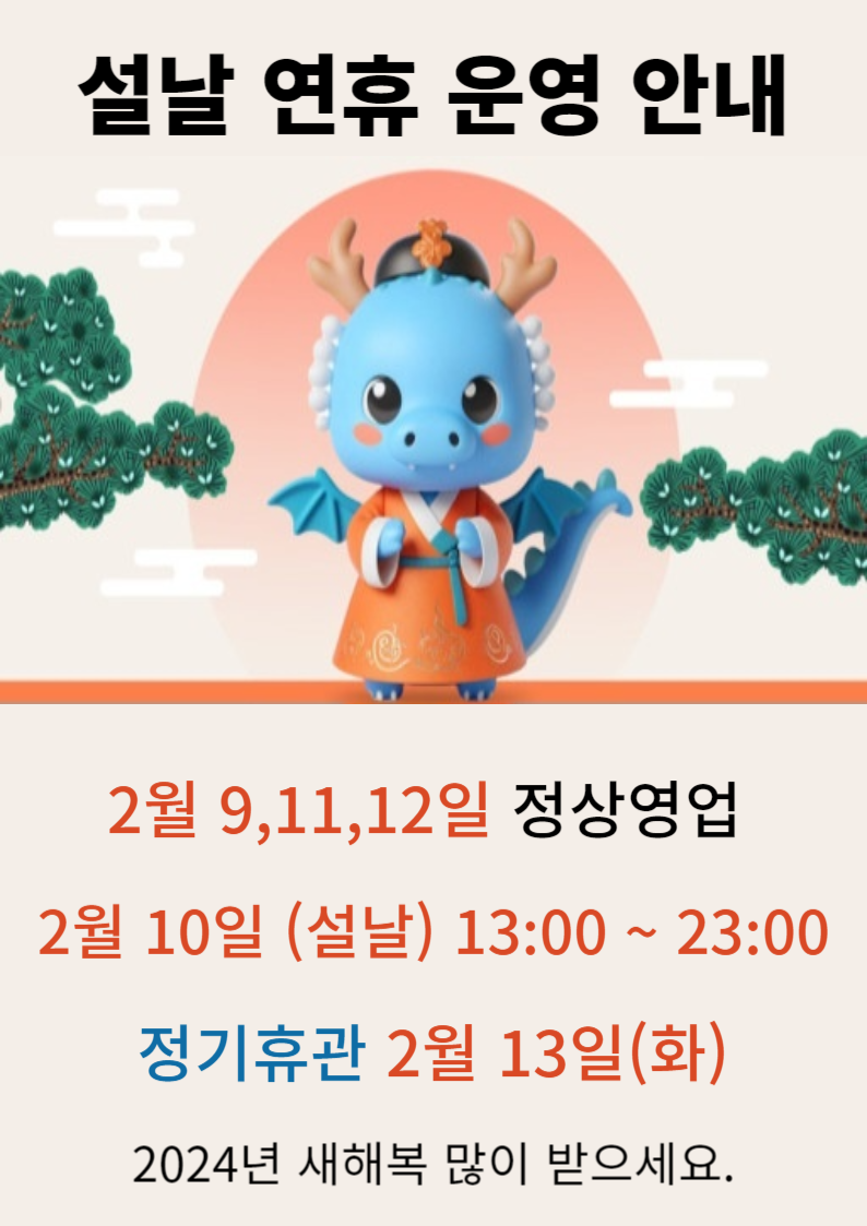 2024년 설 명절 연휴기간 진도개테마파크 운영 안내