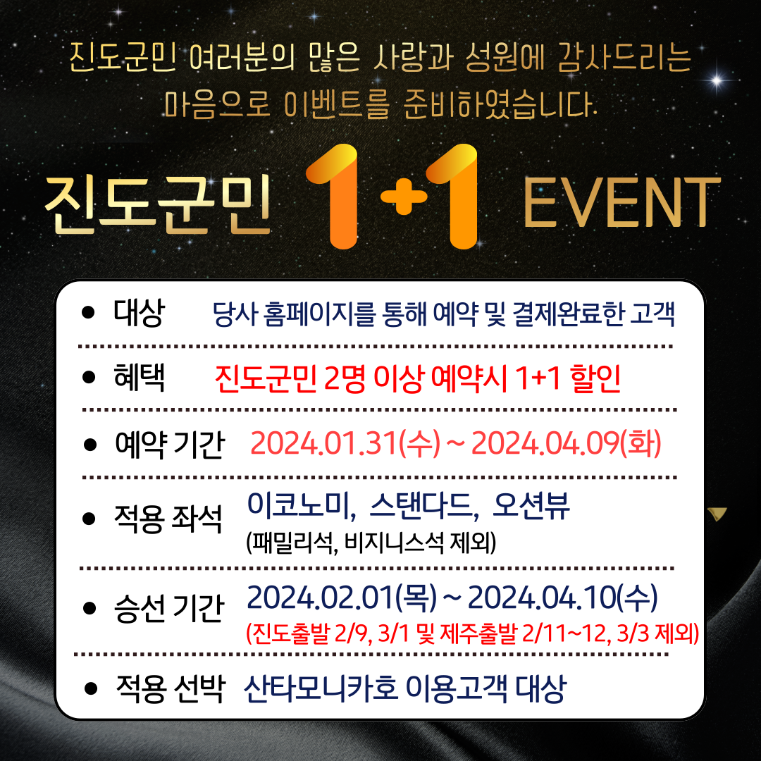 제목 진도 산타모니카 진도군민 1+1 이벤트 ! !