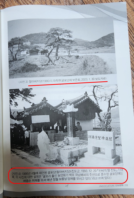 그런데 진도문화원은 지역의 향토문화를 지키며 전승해야 할 기관이면서도 철저하게 굴포당제를 왜곡하는 글을 ‘학술논문’이라는 이유로 기관지에 게재하고 전국에 배포해 버렸다. 거기다 역사강좌까지 열어서 군민들을 가르치려 한다.