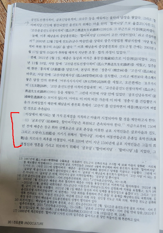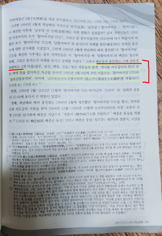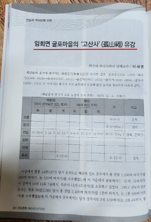 그런데 2024년 2월 설 명절을 앞두고 진도문화원에서 ‘진도문화’를 발간하면서 ‘임회면 고굴포마을의 고산사 유감’(24p~36p)이라는 ‘논문’을 게재했다. 이 논문은 지난 2023년 10월 진도문화원에서 주최한 ‘진도역사문화강좌’에서 다뤘던 내용을 보완한 ‘학술논문’으로 알려져 있다.