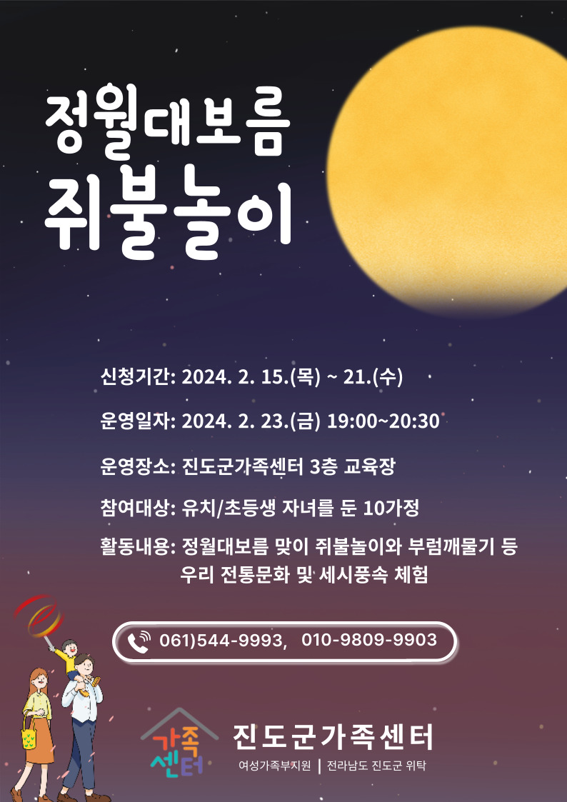 ♣가족센터♣ 가족 사랑의 날 - 정월대보름 쥐불놀이 프로그램 참여자 모집 만내