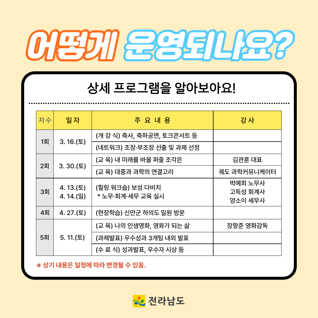 신청문의 : 전라남도 청년센터 061)288-3885, 3888