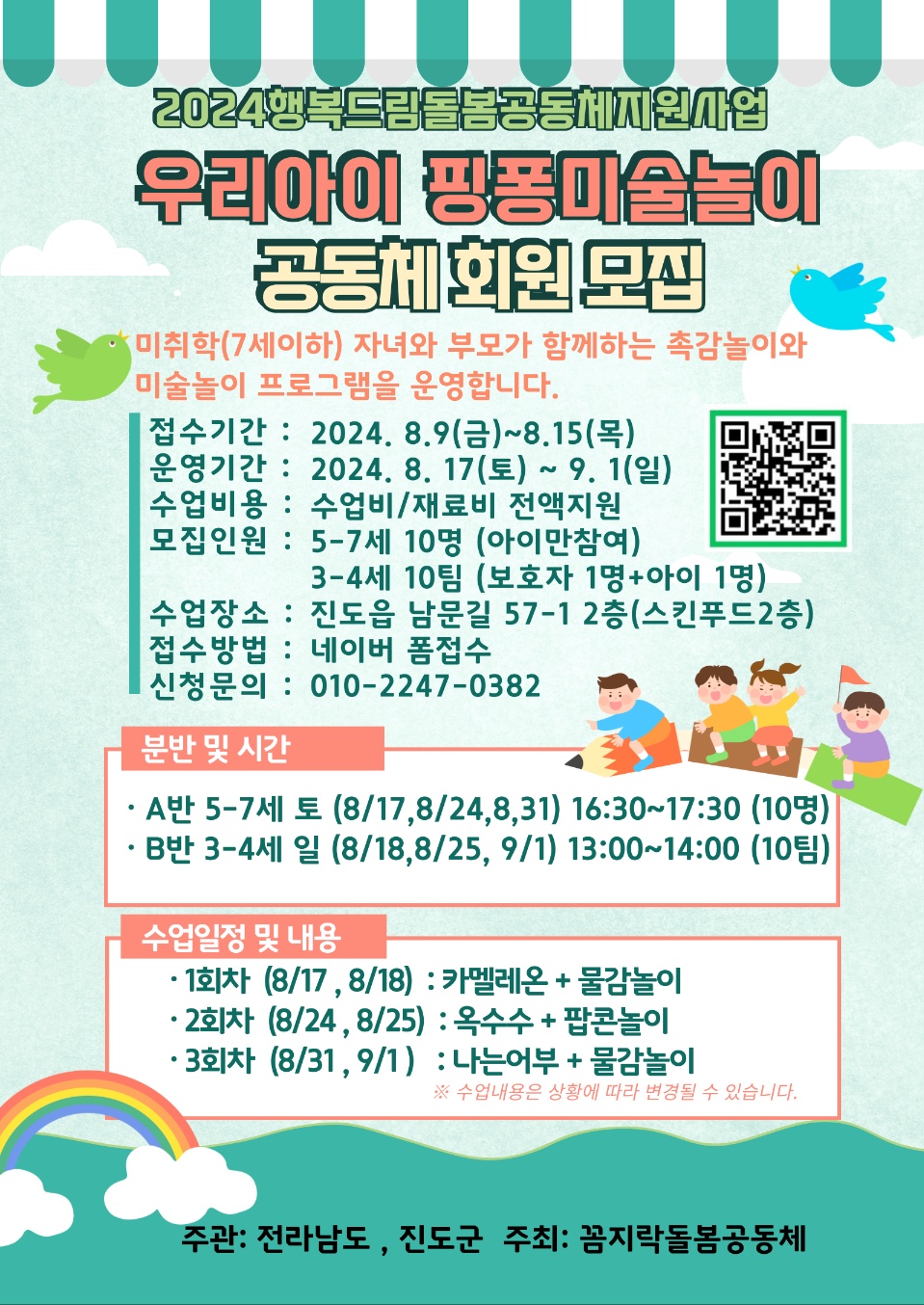 유아 오감미술놀이 프로그램 (3~7세) | 상세 | 자유게시판 : 진도군청 페이지 링크 QR코드 URL:http://www.jindo.go.kr/home/sub.cs?m=20