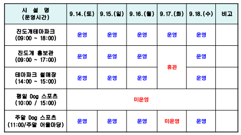제목 2024년 추석 명절 연휴기간 진도개테마파크 시설 운영 안내