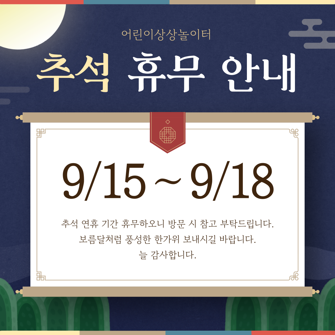 진도군 가족센터 어린이 상상놀이터 추석휴무안내