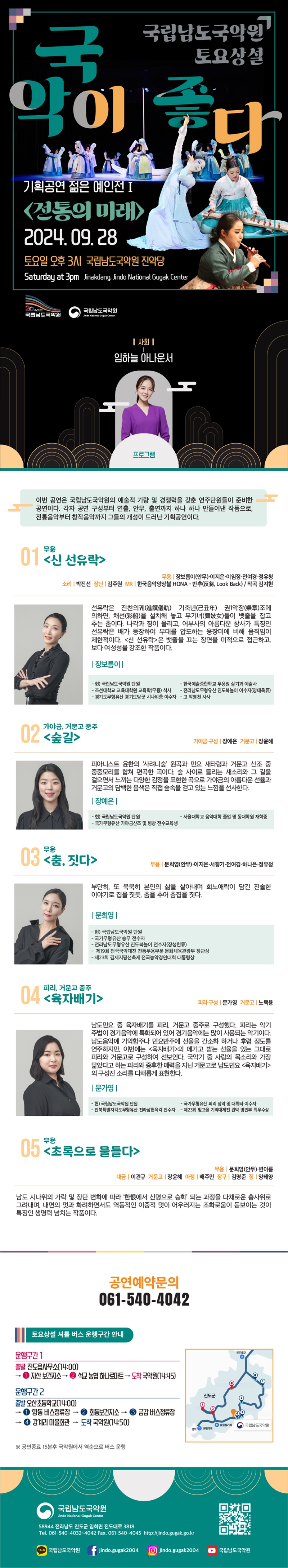 ▶ 국립남도국악원 누리집 바로가기 http://jindo.gugak.go.kr