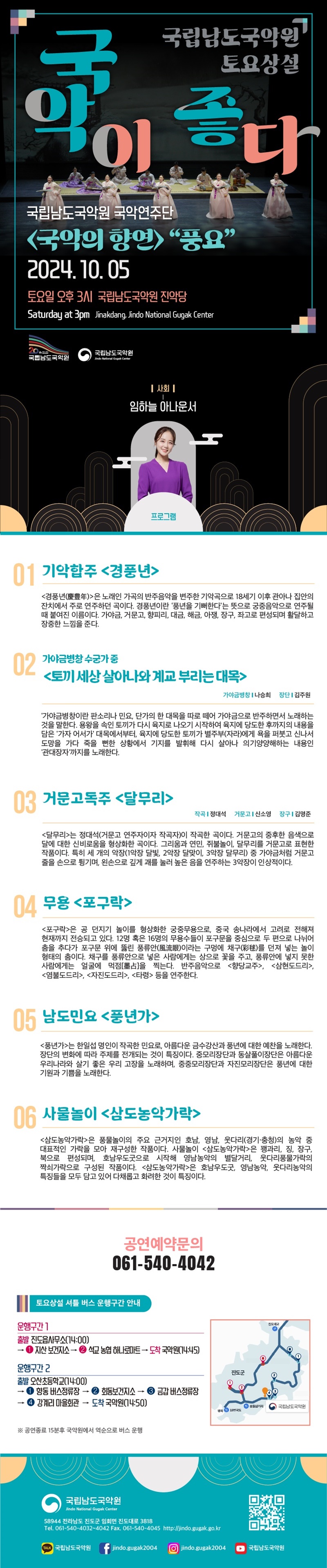 ▶ 국립남도국악원 누리집 바로가기 http://jindo.gugak.go.kr