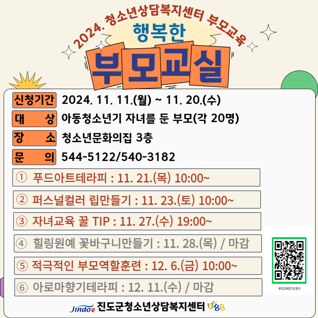 [진도군청소년상담복지센터] 부모교육 '행복한 부모 교실' 참가자 모집