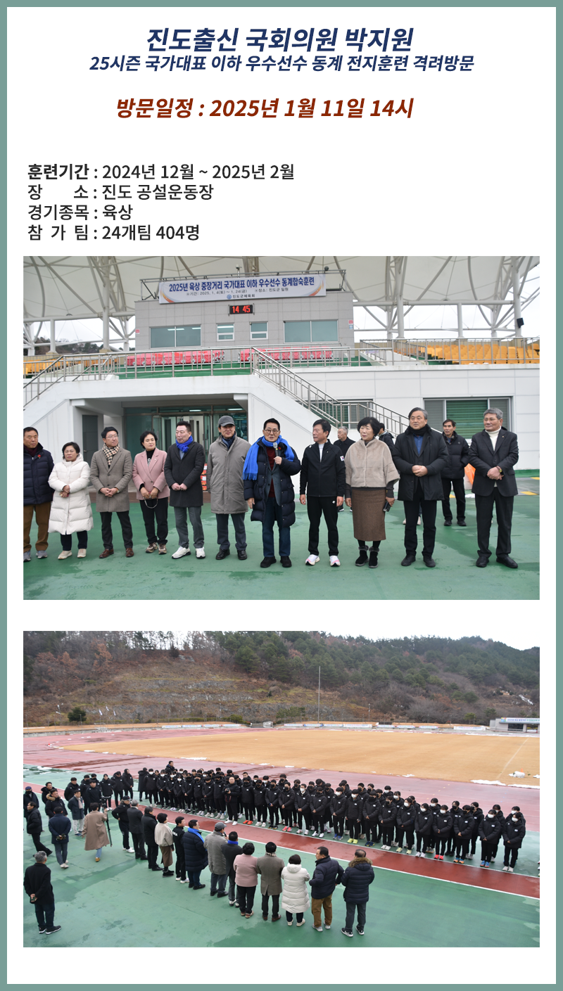 진도출신 국회의원 박지원 국가대표이하 우수선수 동계훈련 격려방문