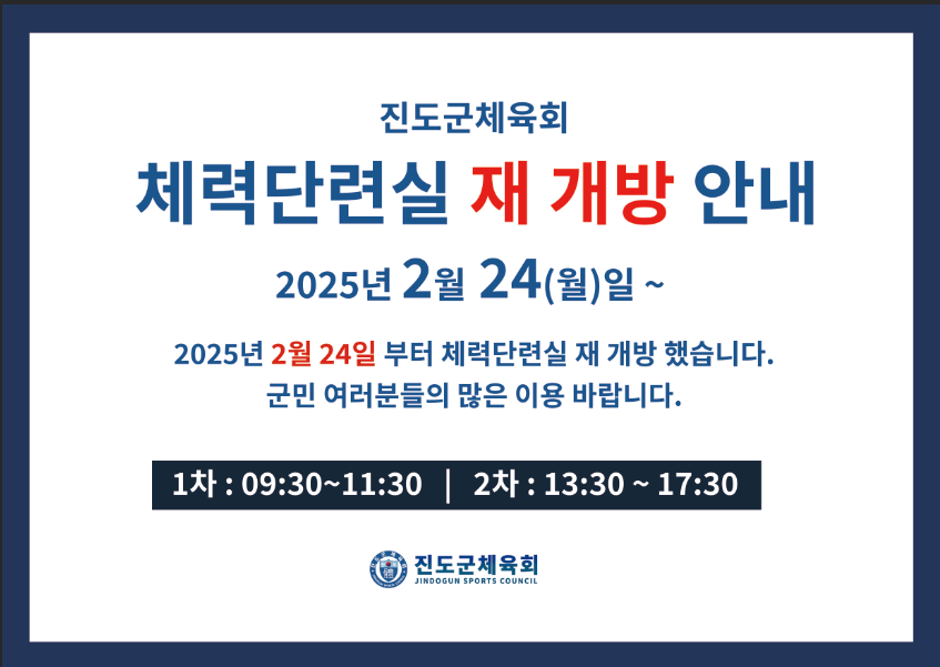 진도군체육회 체력단련실 재개방 안내