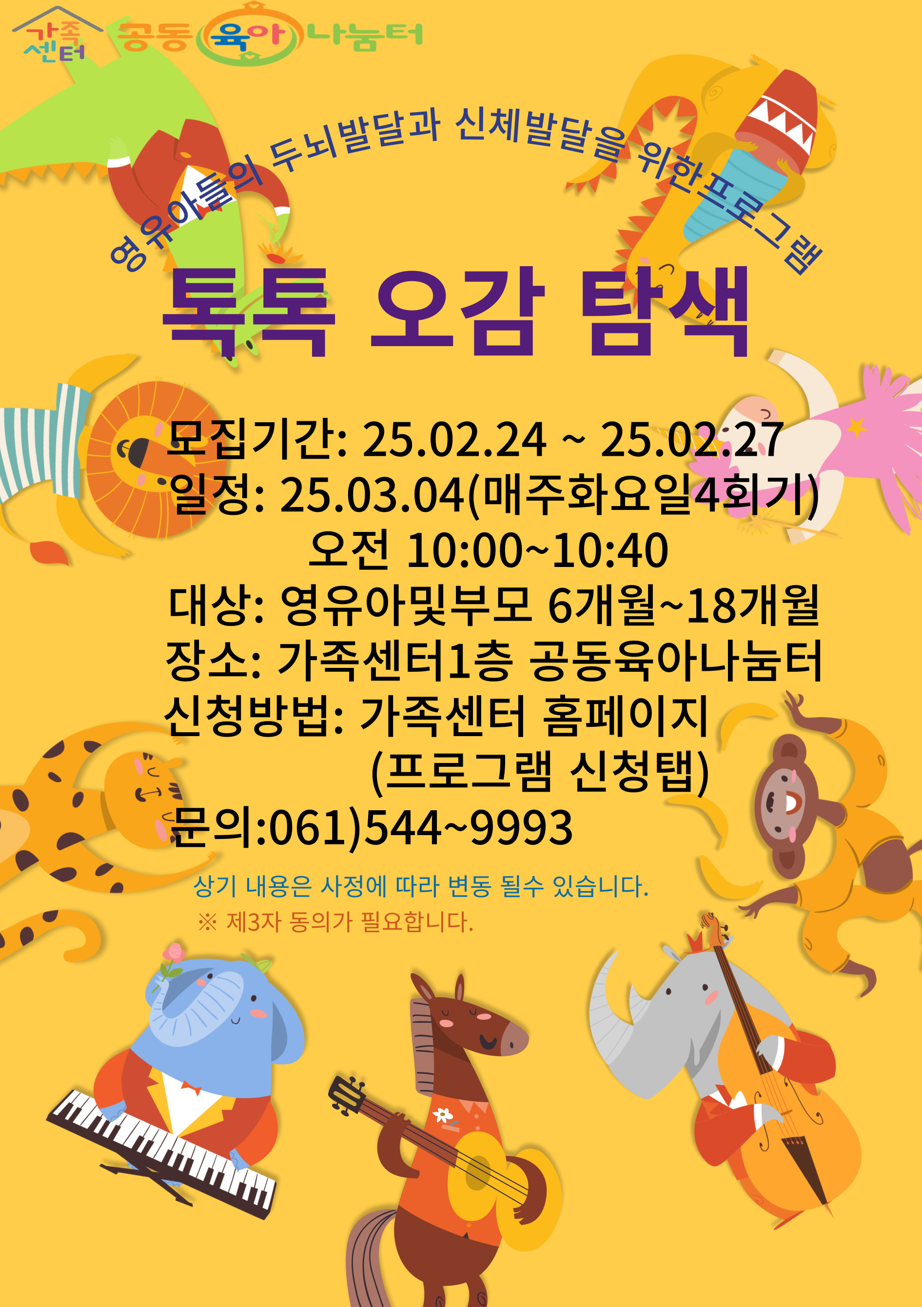 공동육아나눔터 영 유아들이 정서적,신체적 발달 및 창의성 발달에 도움을 주는 촉감 놀이프로그램 참여자를 모집합니다~