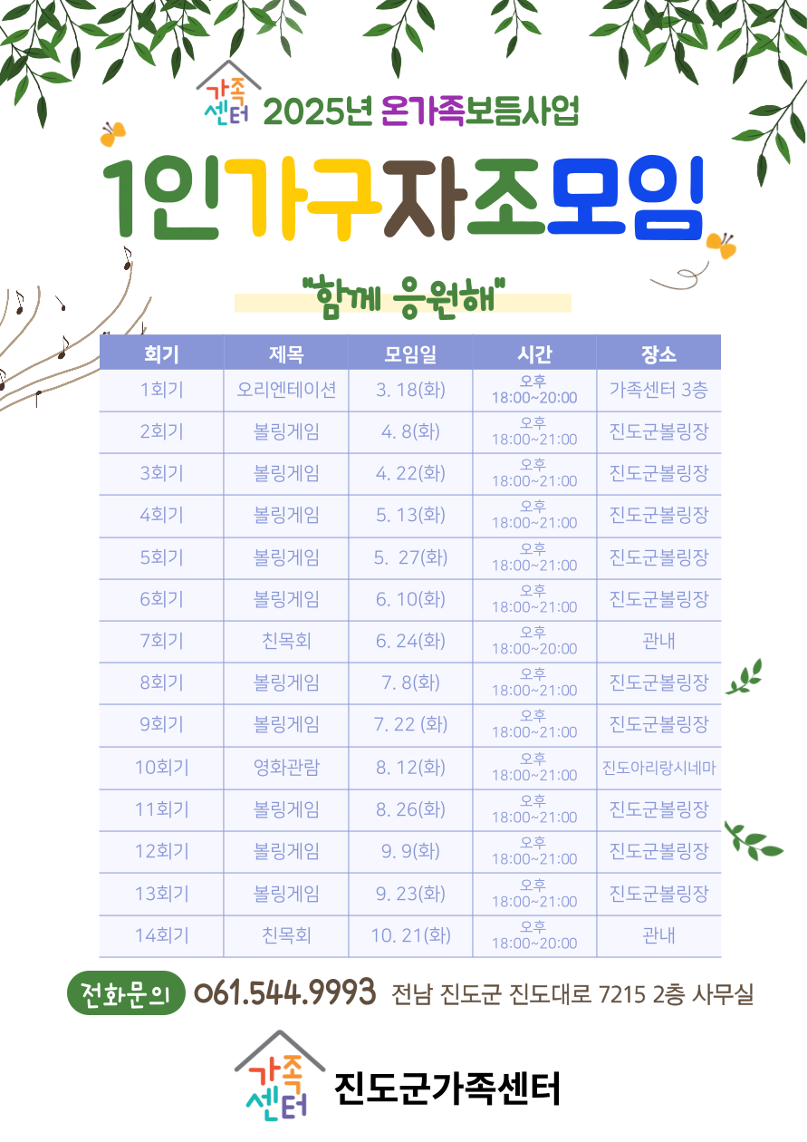 자세한 내용은 진도군가족센터 홈페이지에서 확인하시고 신청하세요~~