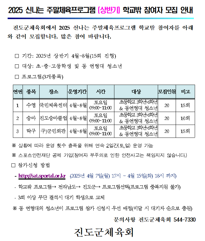 2025 신나는 주말체육프로그램 (상반기) 학교밖 참여자 모집 안내