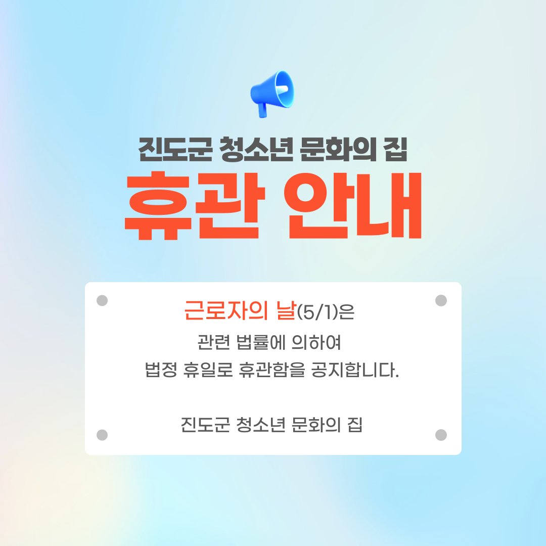 진도군 청소년문화의집 근로자의 날 휴관안내