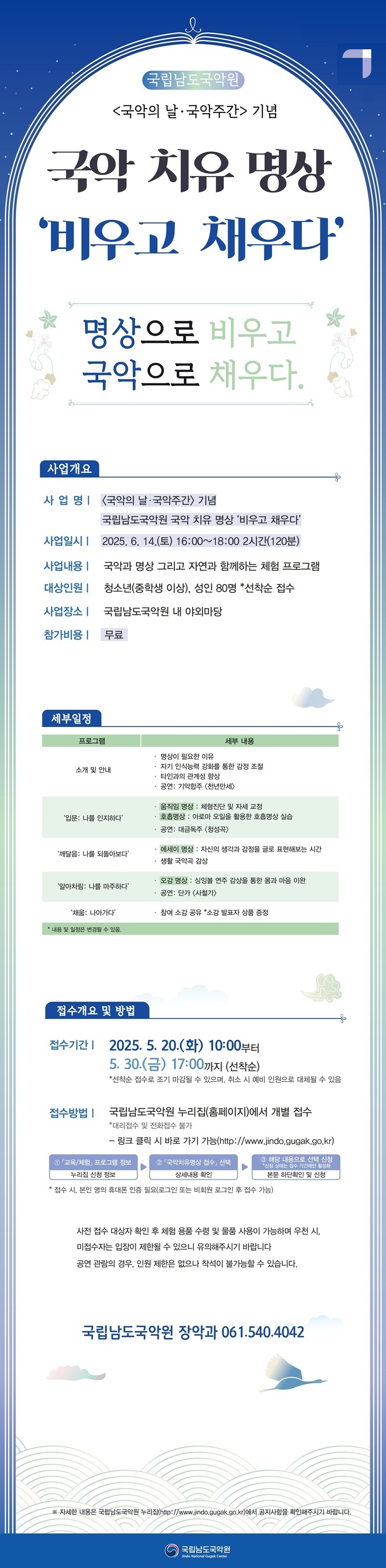 접수방법: 국립남도국악원 누리집(홈페이지)에서 접수