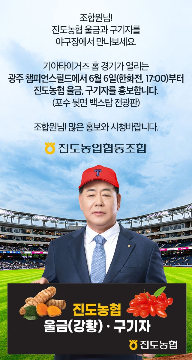 진도농협 울금+구기자 광주챔피언스필드 야구장 홍보 안내
