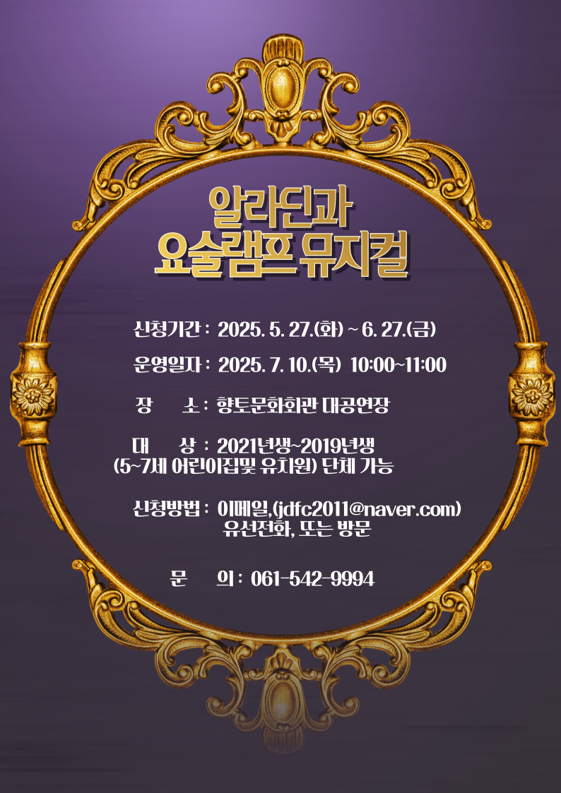 ★ 진도군가족센터★뮤지컬(알라딘과 요술램프) 프로그램 신청 안내(5~7세) 어린이부모동반,단체가능