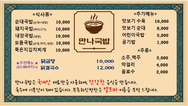 안녕하세요 ~ 07.01 오픈한 만나순대국밥입니다!