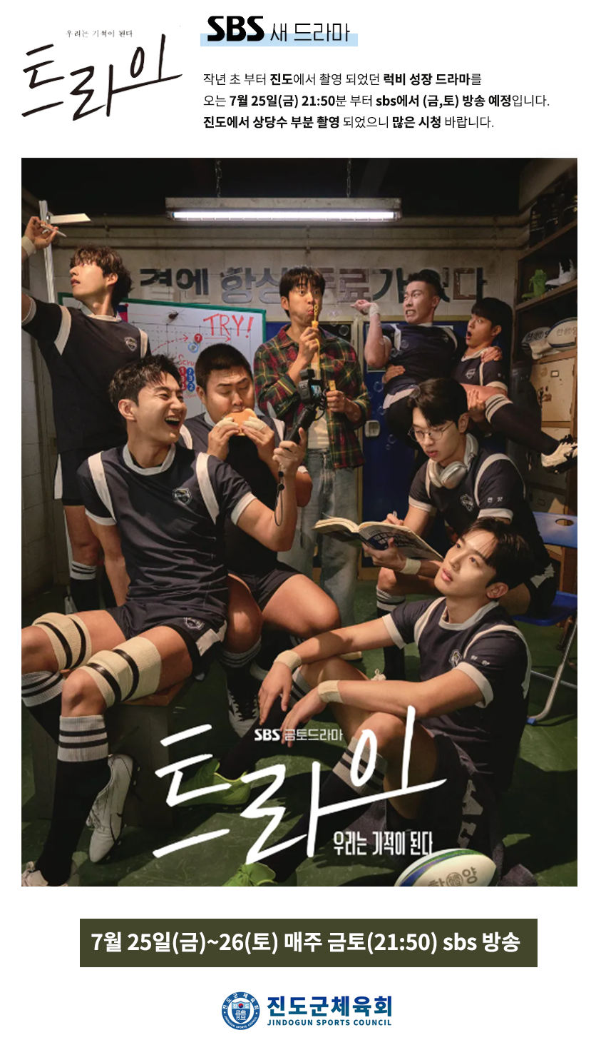 진도에서 촬영한 럭비 성장 드라마 "트라이" 방송 안내